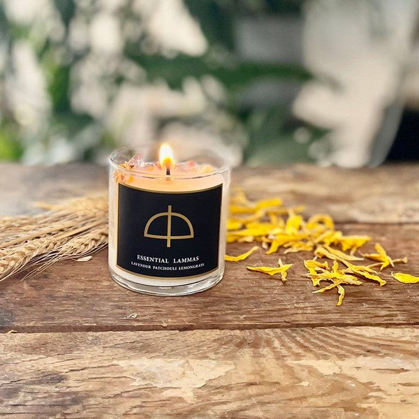 Cotton wick, GMM-free soy wax, organic coconut oil, organic botanicals, cross roads dust, mica, proprietary blend of organic essential oils encasing a crystal charged under the full moon.