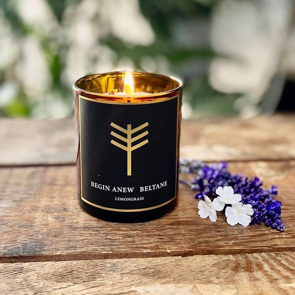 INGREDIENTS Cotton wick, GMM-free soy wax, organic coconut oil, proprietary blend of organic essential oils, botanicals, & mica encasing a crystal charged under the full moon..