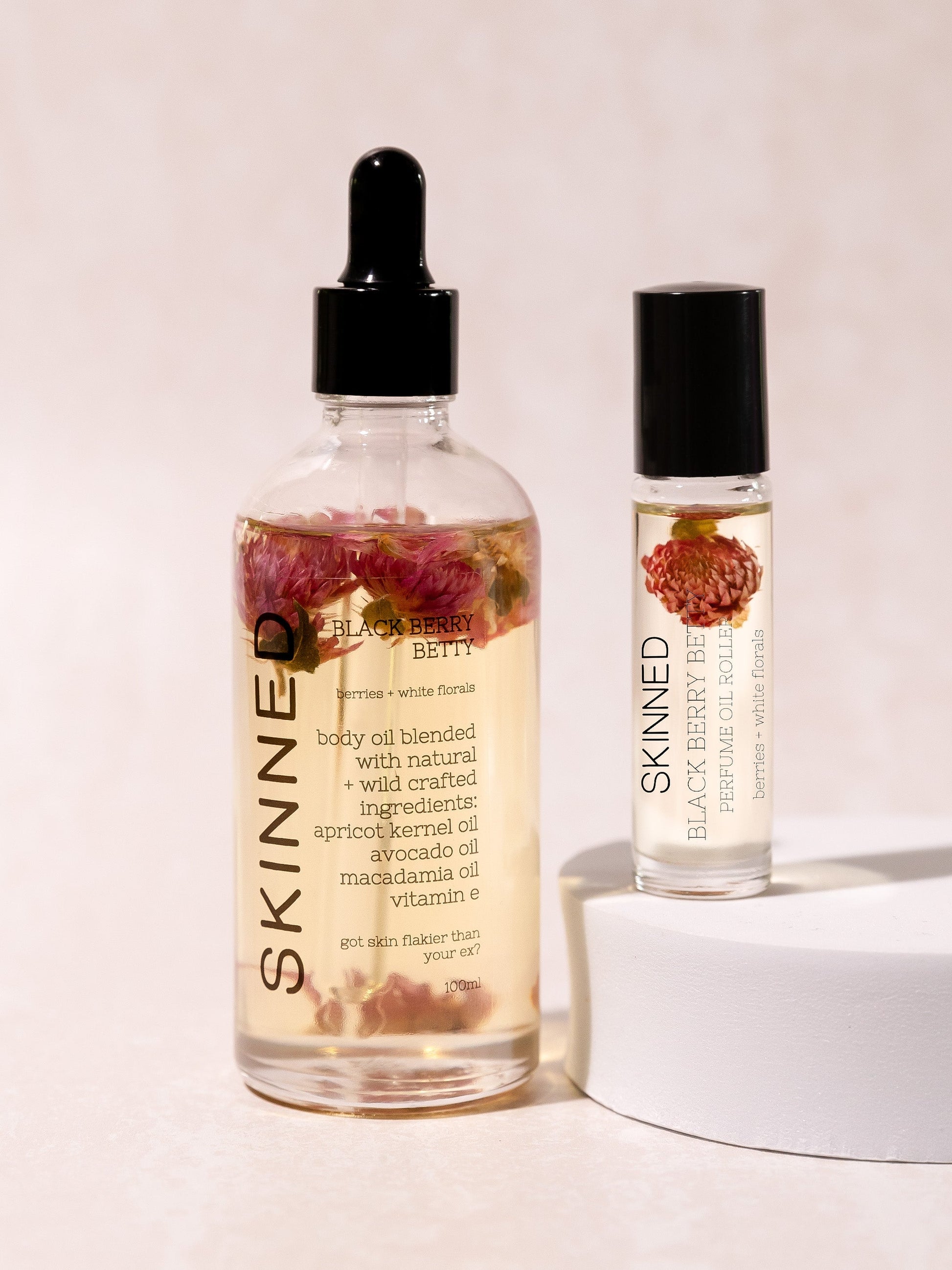 Black Berry Betty Body Oil and matching Black Berry Betty Perfume Oil Roller.