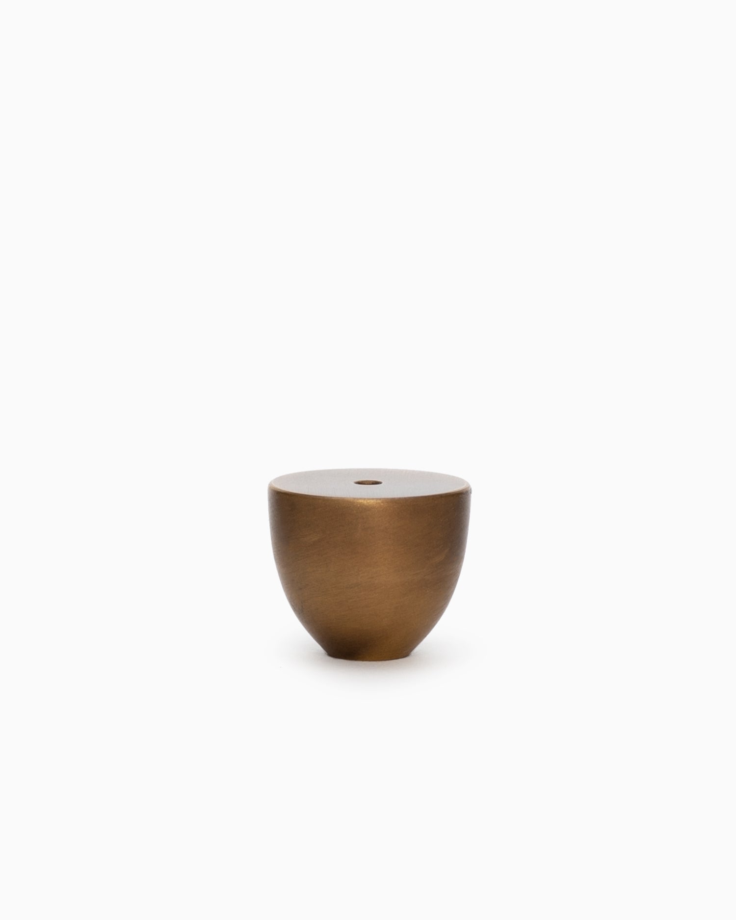 A sculptural plinth shaped incense burner cast from solid brass & hand-finished with a natural oiled patina.