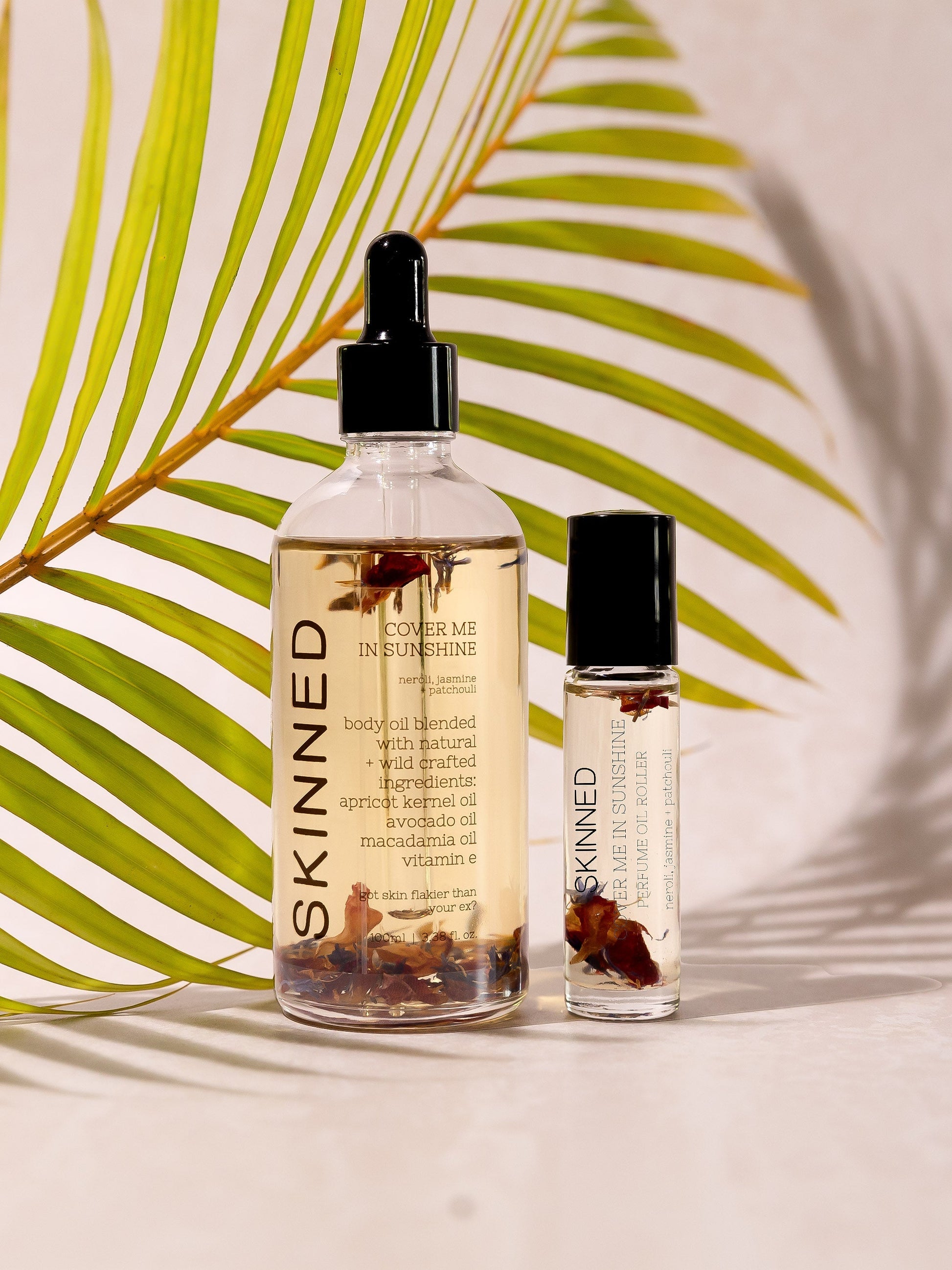 Cover Me In Sunshine Body Oil and matching Cover Me In Sunshine Perfume Oil Roller.