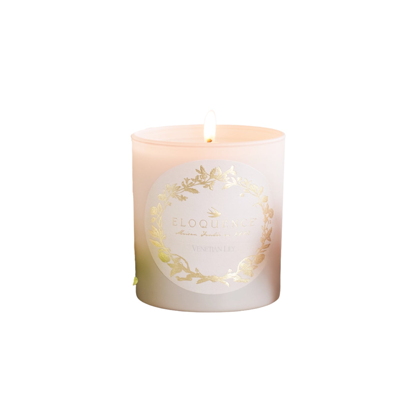 The Venetian Lily scents of sweet tuberose and creamy lily are warmly complimented with the fruity nuance of tart rhubarb and deep spicy quince. Thoughtfully designed and hand-poured in California, these candles are made from a natural and sustainable coconut wax blend and lead-free cotton wicks for a paraben-free, clean burn.