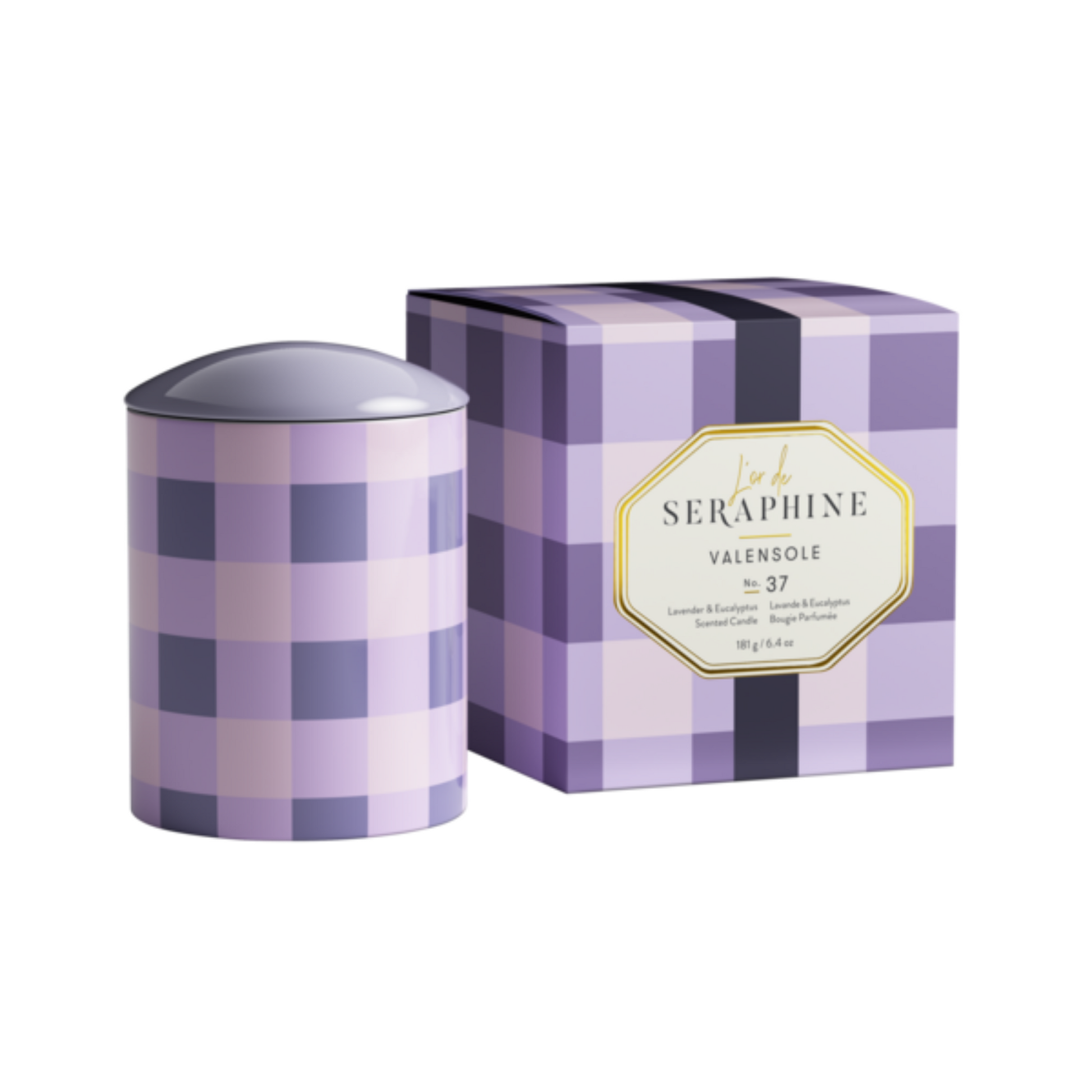 A relaxing scented candle with key scents of lavender and sage. Infused with essential oils and featuring notes of lavender, eucalyptus, and clary sage. Housed in a beautifully designed ceramic candle holder featuring a purple gingham pattern inspired by the flowing fields of lavender in the French town of Valensole, where endless stretches of fragrant lavender create a meditative sense of calm. The Valensole candle comes in a beautifully packaged gift box and is soothing and grounding. Our candles are sustainably sourced, free from pthalates and parabens and made with 100% organic cotton wick.