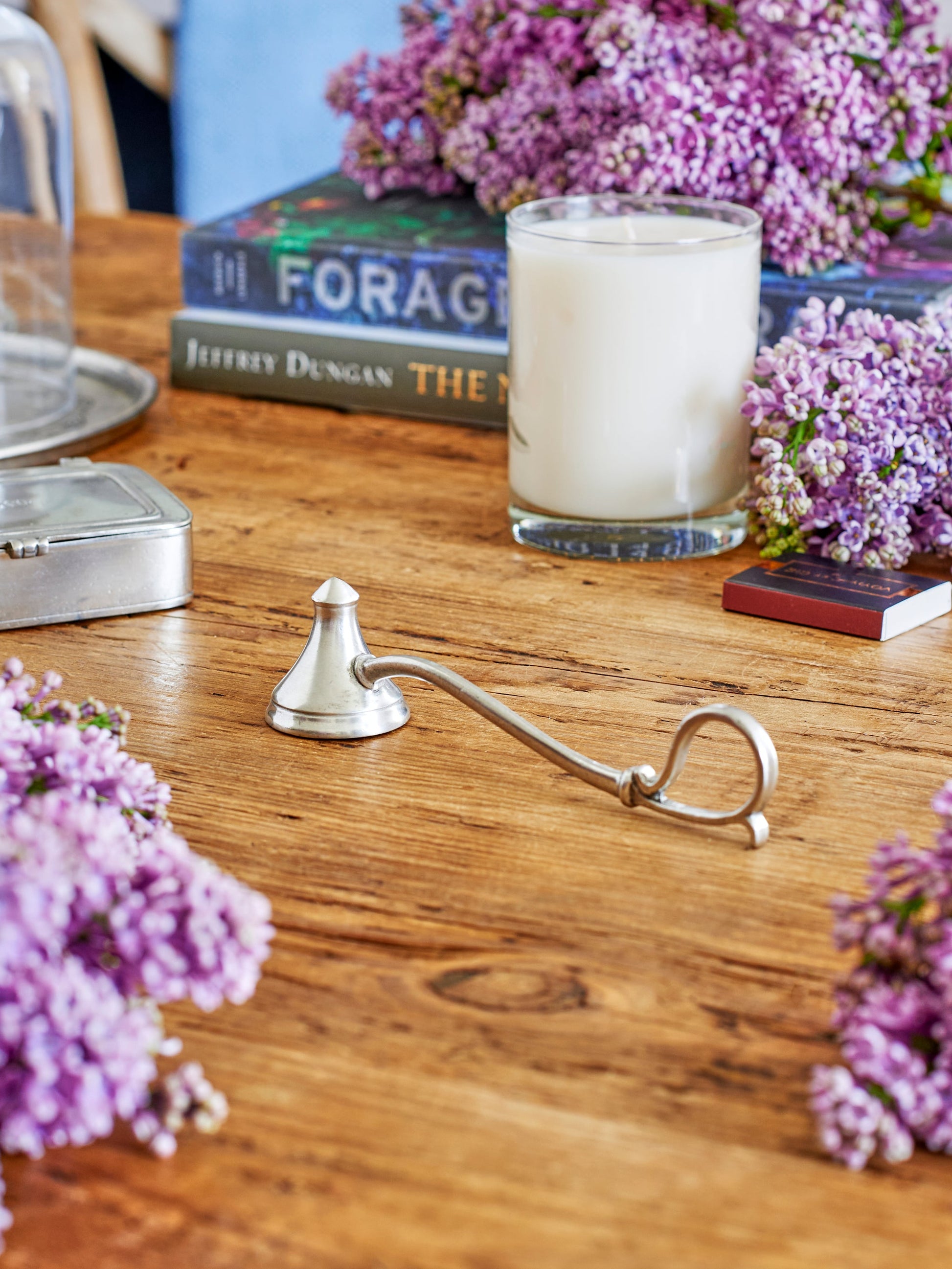 There is a place in every home for The MATCH Pewter Curved Candle Snuffer. In 1776, Englishman Christopher Pinchbeck patented the candle snuffer. It became so popular in the British Isles that the poem "Ode to Mr. Pinchbeck, Upon His Newly Invented Candle Snuffers" was written by Malcolm MacGreggor only a year later. The custom of elaborately engraving these pewter, brass, and copper snuffers continues to this day. Not only an elegant way to extinguish a flame, the snuffer prevents hot wax from splattering onto your tabletop and leaves the room you were burning it in smoke free.