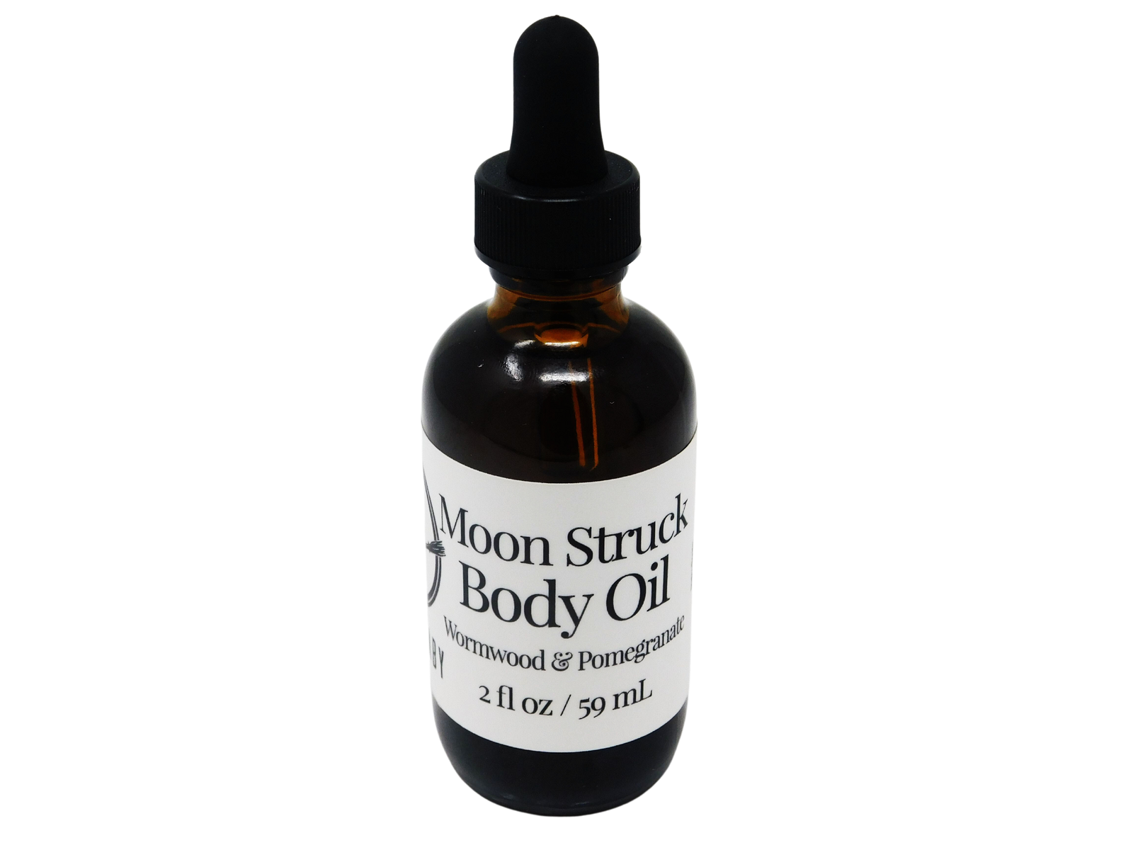 Moonstruck is an uninhibited midnight stroll in a forbidden forest. This insatiable lunar blend smells of overgrown artemisia, thorny wild blackberries, psychic magnolia, and pomegranate trees. Each bottle contains pomegrante arils.