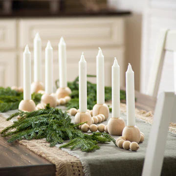 Natural Wood Beaded Taper Candle Holder Centerpiece Tabletop Décor