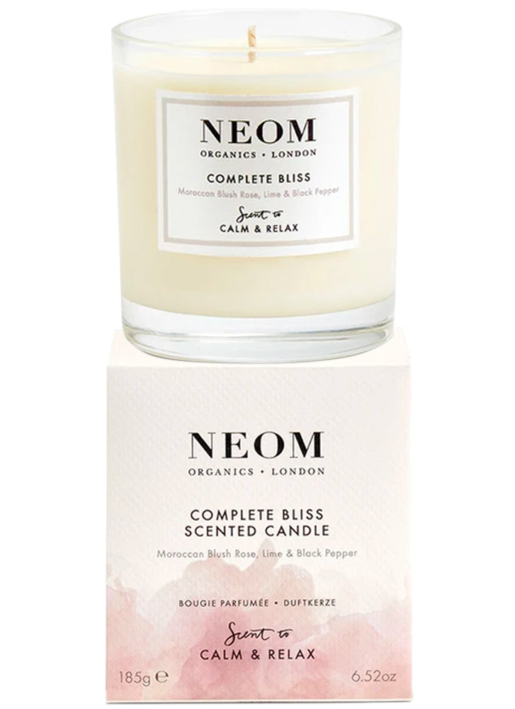 Neom Organic Complete Bliss Scented Candle (1 wick) is a combination of 16 essential oils with a unique, blissful blend with high quality, therapeutic Moroccan blush rose oil at its heart. Rose has traditionally been used to lift mood and inspire confidence. It also works as an aphrodisiac and helps against hay fever, headaches and tension. Lime and black pepper both work to stimulate the mind, leaving you with an uplifted feeling.