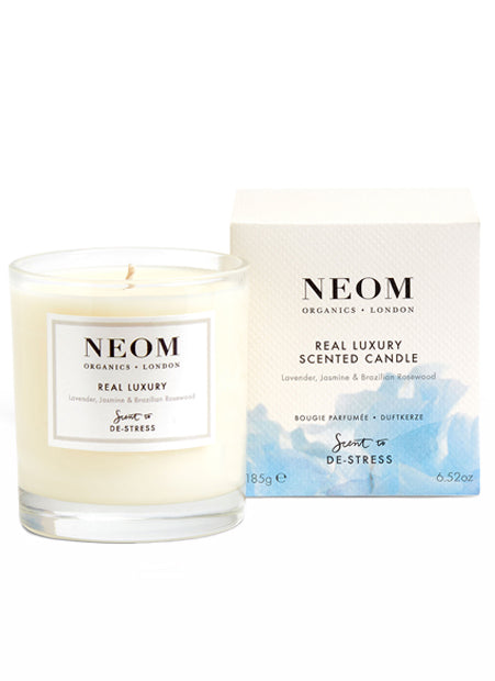Neom Organic Real Luxury Scented Candle (1 Wick) is a combination of 21 essential oils, all chosen for their ability to make you feel pampered, for this sophisticated and distinctive Neom signature blend. Jasmine is an oil long celebrated for its ability to lift the spirits and inspire optimism. For this unique blend we coupled it with rosewood, a comforting and warming oil with a balancing effect on the mind and body and ultra-relaxing lavender.