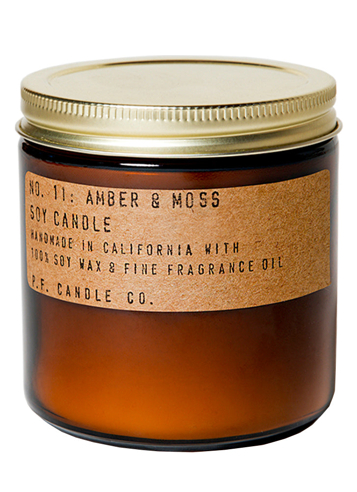 P.F. Candle Co. No. 11 Amber and Moss Large Soy Jar Candle is an aromatic soy candle, hand-poured into an apothecary-inspired amber jar in their studio in Los Angeles. Amber & Moss is ideal for lovers of the outdoors, with a scent evoking memories of forest floors fused with a hint of lavender, sage and orange.