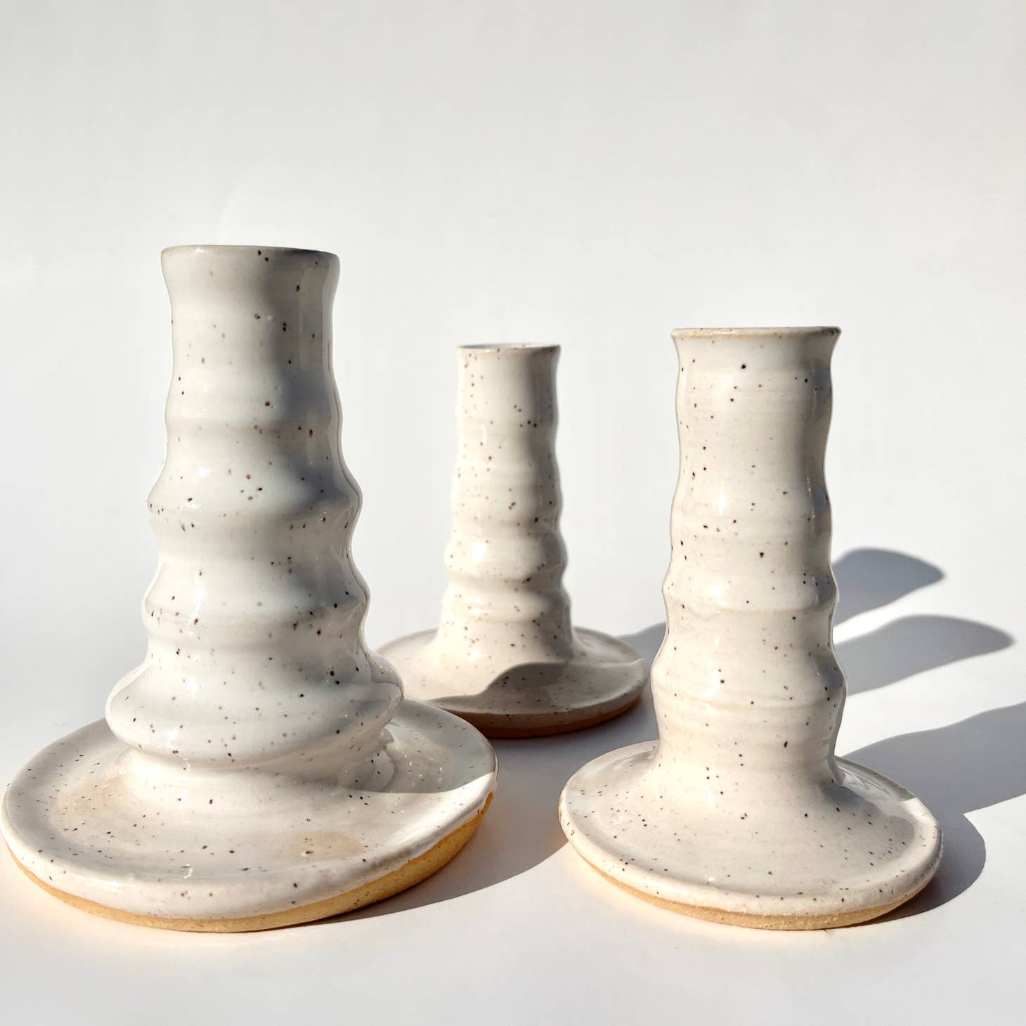 Ninth House Ceramics: White Waves Speckled Candlestick Holders