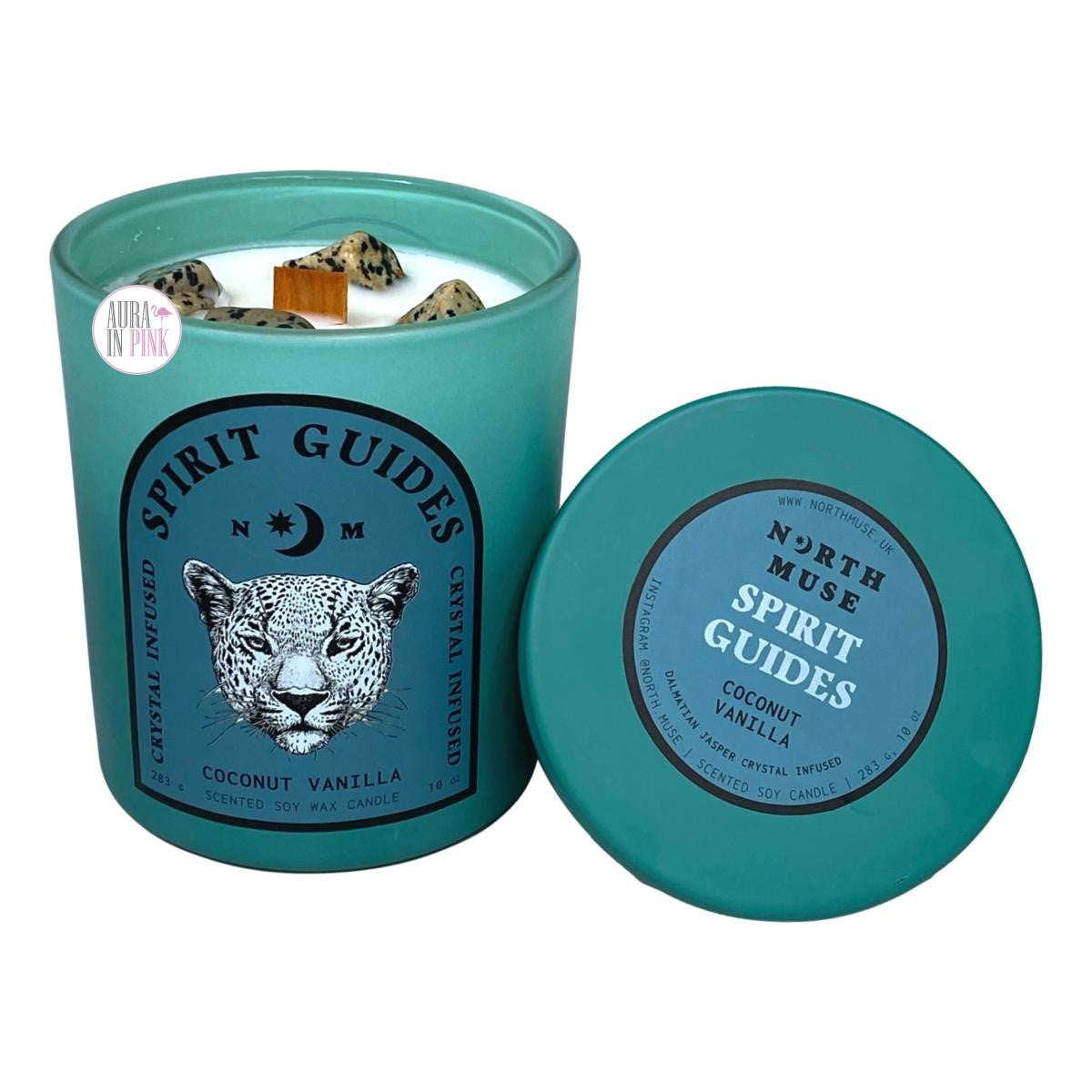 North Muse Spirit Guides The Leopard Dalmation Jasper Crystal Infused Coconut Vanilla Scented Glass Jar Candle
