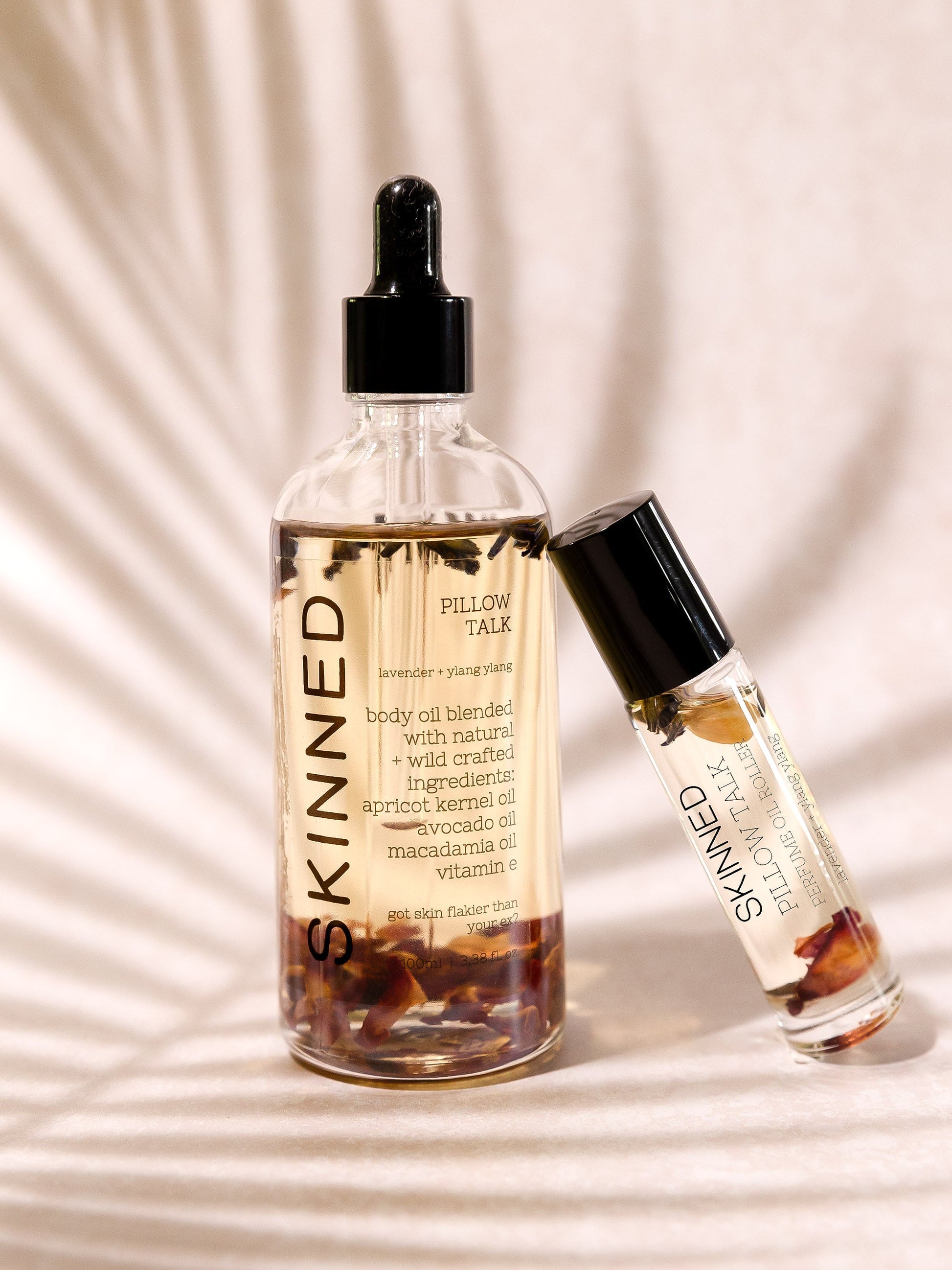 Pillow Talk Body Oil and matching Pillow Talk Perfume Oil Roller.