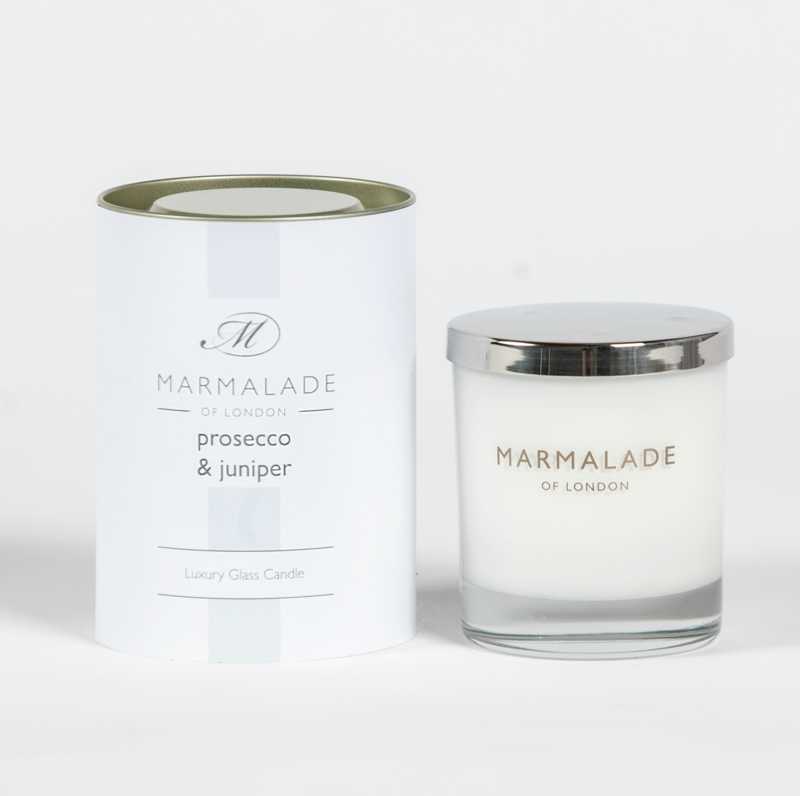 Fill your home with a beautiful blend of Prosecco superior, juniper berries, sugared rose petals, and winter peony. Hand poured in Great Britain using the finest blends of high quality fragrance. Each candle is made using 100% natural soy wax. 50 hours or more of burn time.