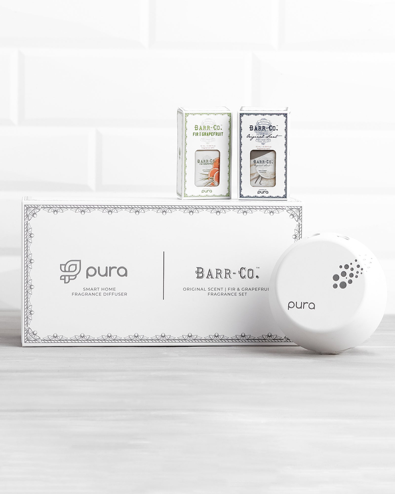 Barr-Co. is now powered by Pura, an app-based device that allows you to schedule your favorite fragrances at your fingertip.