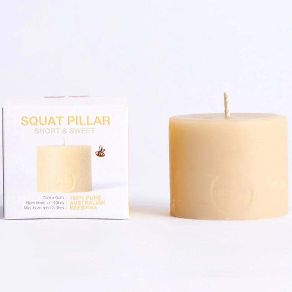 Queen B Beeswax Squat Pillar Candle - 6cm/40hr Burn Time