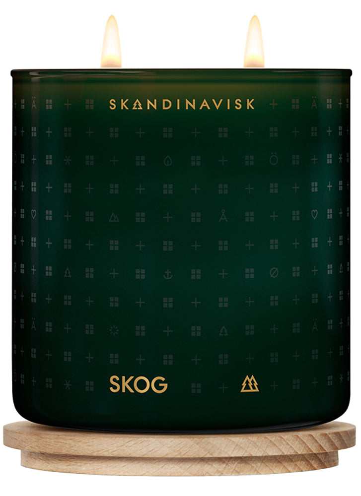 Skandinavisk Skog Scented Candle is a perfume and Swedish rapeseed wax blend in painted glass with 2 pure cotton wicks, FSC-certified beech lid and hard box gift packaging. The local Swedish rapeseed wax is sustainably farmed, traceable and non-GMO for the lowest environmental impact.