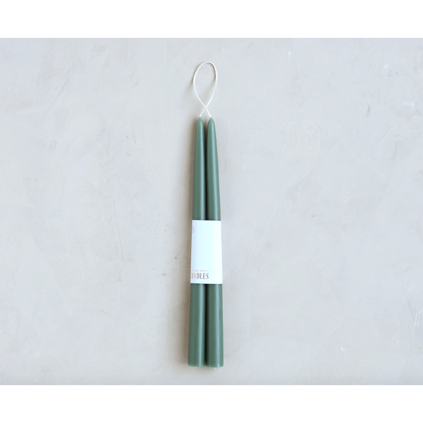 These tapers are crafted to burn drip-free at a rate of approximately 1 hour per inch. Each candle is dipped 35 times for a superior depth of color, and pairs are joined by a braided cotton wick for the cleanest burn.