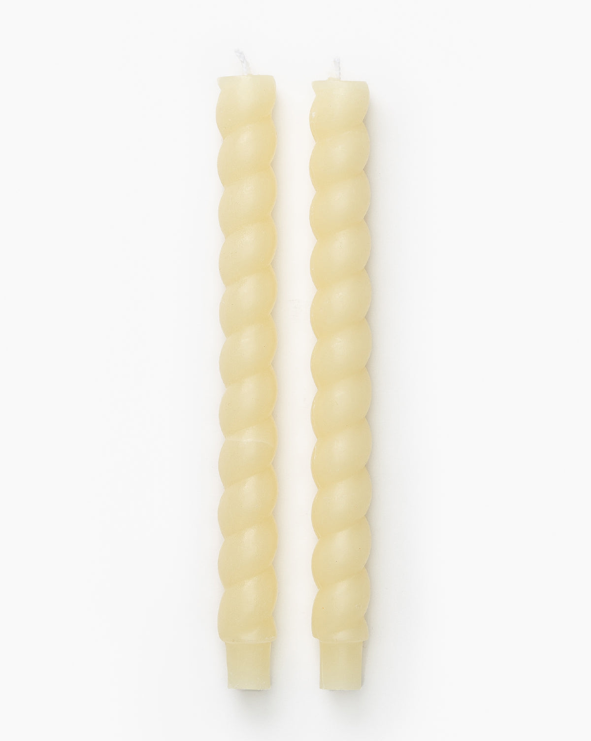 In a cream colorway twisted in a corkscrew-style design, the Twisted Candles (Set of 2) are neutral and shapely. Styled in a candle holder that highlights their stature, the Twisted Candles are a detailed addition to vignettes.