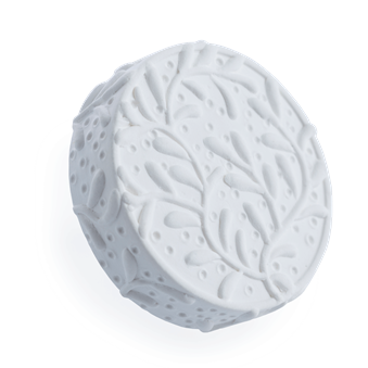 Debossed pinholes and embossed vine patterns hold essential oils cleanly and elegantly.